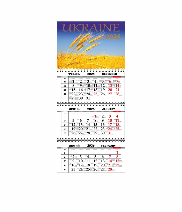 Квартальний настінний календар Vivay 2026 Україна 30x65 см Різнокольоровий (hub_lum6x9)