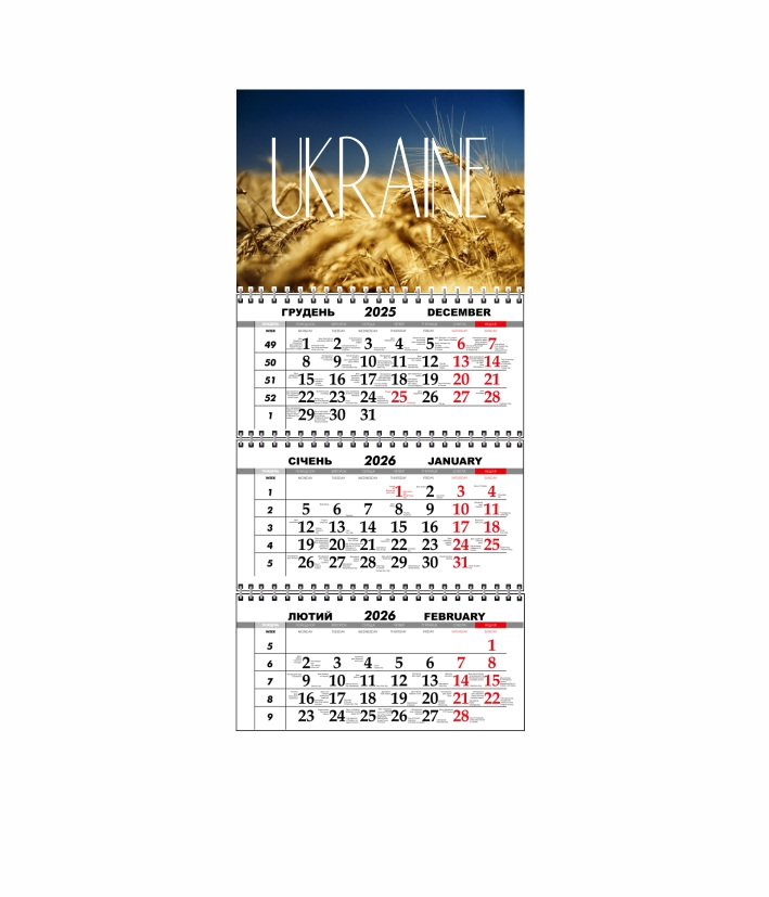 Квартальний настінний календар Vivay 2026 Україна 30x65 см Різнокольоровий (hub_y4hdhj)