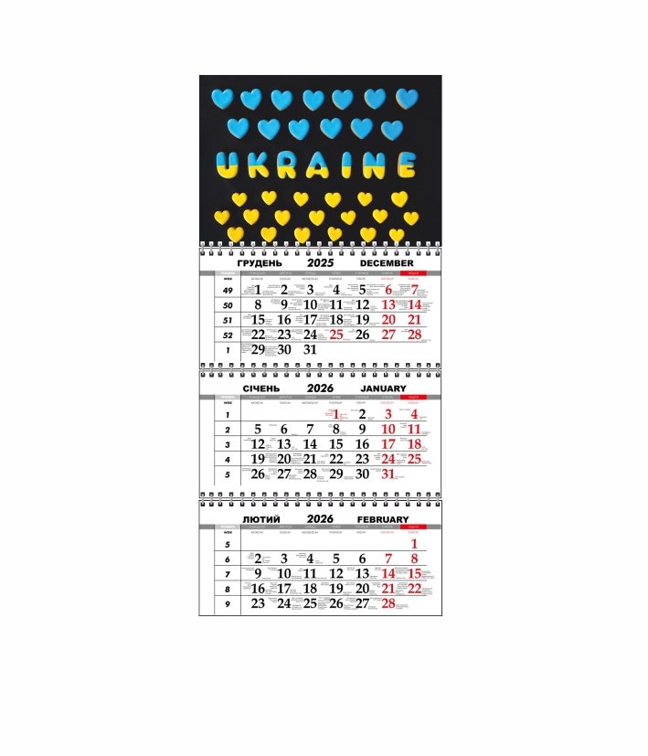 Квартальний настінний календар Vivay 2026 Україна 30x65 см Різнокольоровий (hub_y4hdhj)