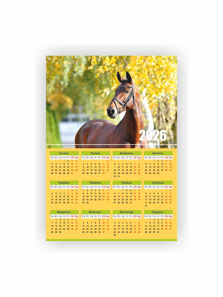 Календар-плакат Vivay 2026 Рік коня А3 Різнокольоровий (hub_0lmbch)