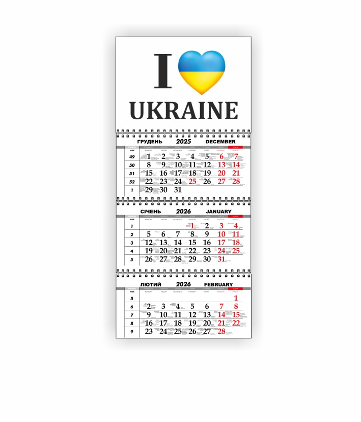 Квартальний настінний календар Vivay 2026 Україна 30x65 см Різнокольоровий (hub_y4hdhj)