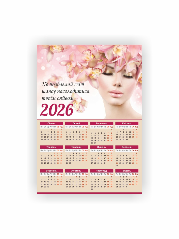 Календар-плакат Vivay 2026 Салон краси А3 Різнокольоровий (hub_hz1b34)