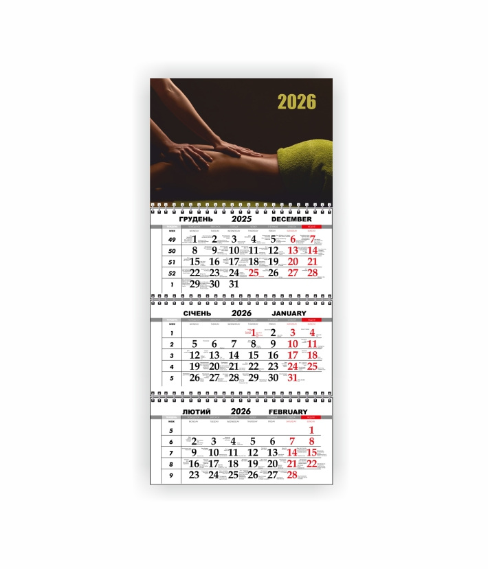 Квартальний настінний календар Vivay 2026 Масажний кабінет 30x65 см Різнокольоровий (hub_681iu2)