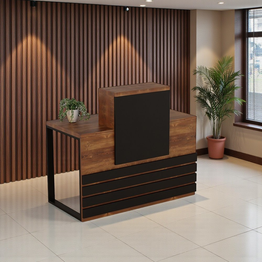 Стійка адміністратора Tobi Sho Ресепшн/5 центральна для офісу, салону, 1400х636х1090 Фаєрвуд/Чорний
