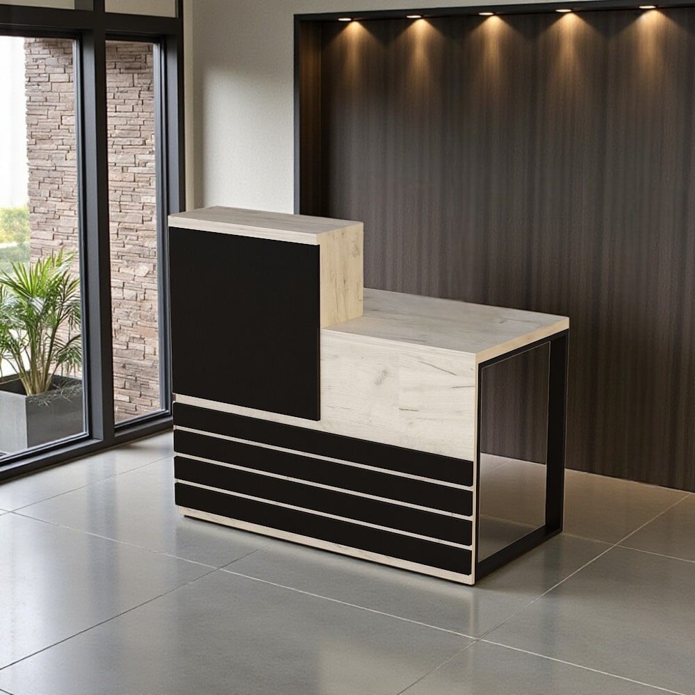 Стійка адміністратора Tobi Sho Ресепшн/5 правостороння для офісу, салону, 1200х636х1090 Дуб крафт білий/Чорний