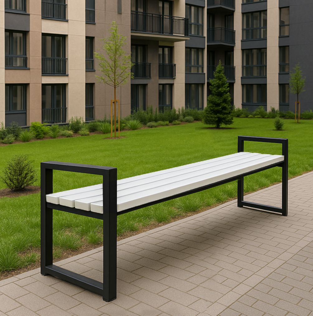 Лавка с ПВХ профиля Tobi Sho Модерн без спинки для парка, сада, сквера, 1514х598х415 мм Бело-черный