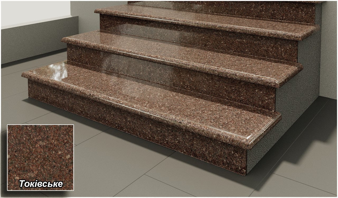 Гранітні сходинки червоного кольору. Наше підприємство, яке знаходиться в Житомирській області, виготовляє сходинки по вашим індивідуальним розмірам. Сходинки можуть бути як поліровані(як правило всередені приміщень), так і термооброблені - для використання на вулиці. Зазвичай сходинки робляться товщиною 3 см. Але по бажанню замовників ми можемо зробити їх любої товщини. Ми організуємо доставку сходинок по всій Україні попутним транспортом або Новою поштою.