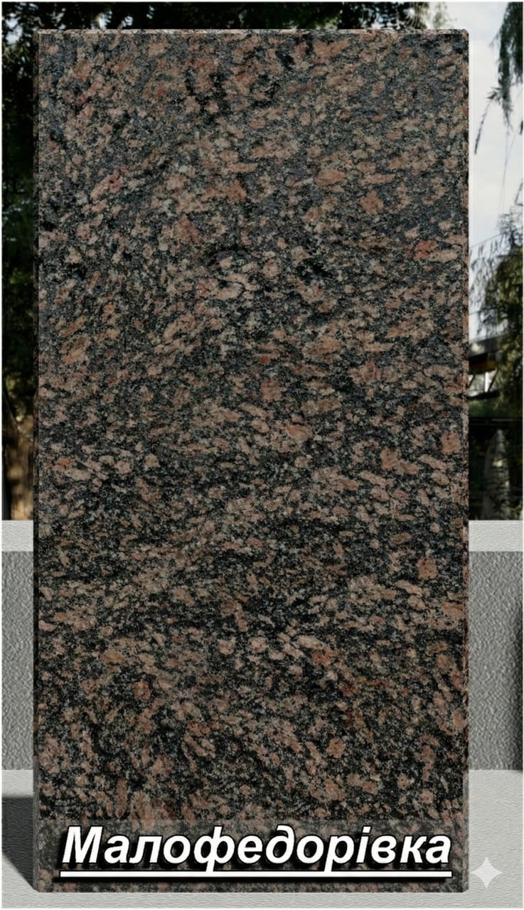 Опис Гранітна плитка Малофедорівська термооброблена сіро-червона