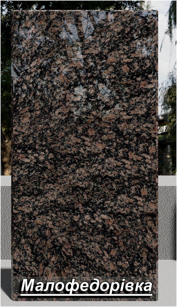 Опис Гранітна плитка Малофедорівська полірована сіро-червона