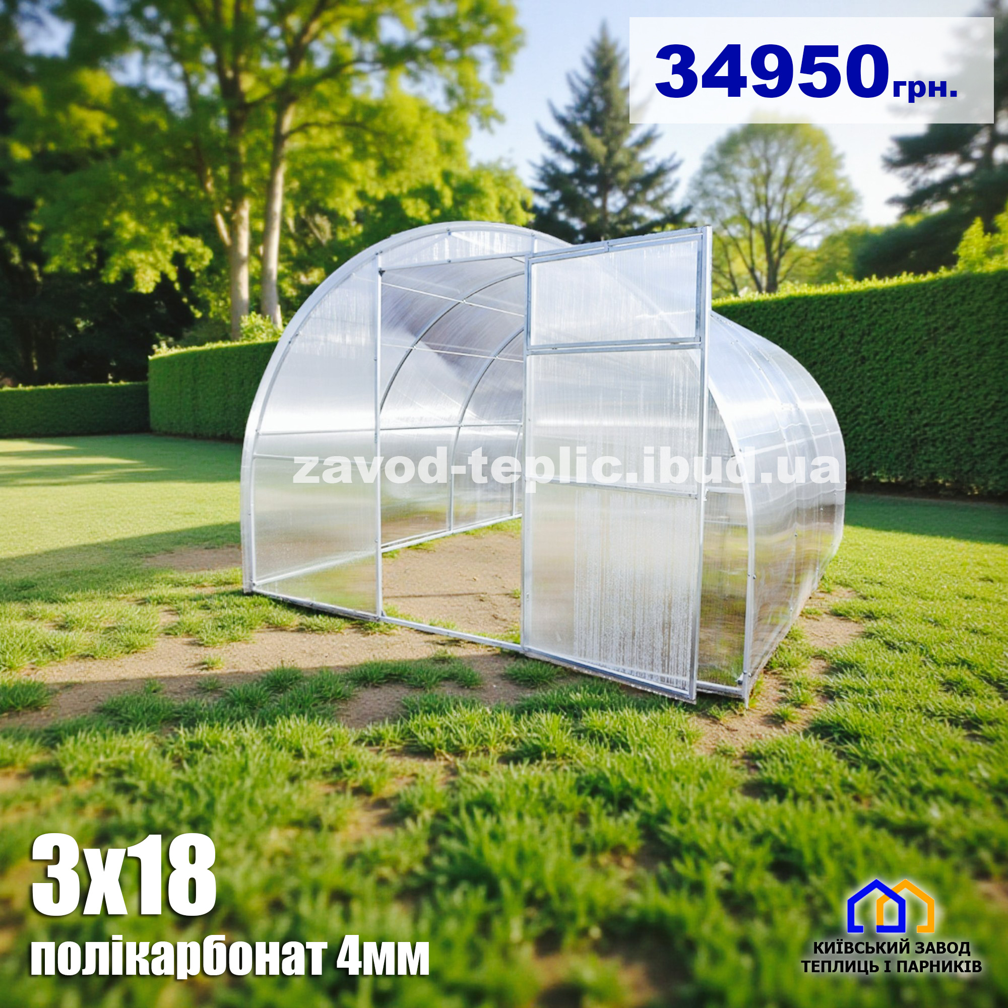 Стандартна теплиця - Теплиця має двері та дві кватирки, можливе встановлення додаткових дверей та кватирок на замовлення!
