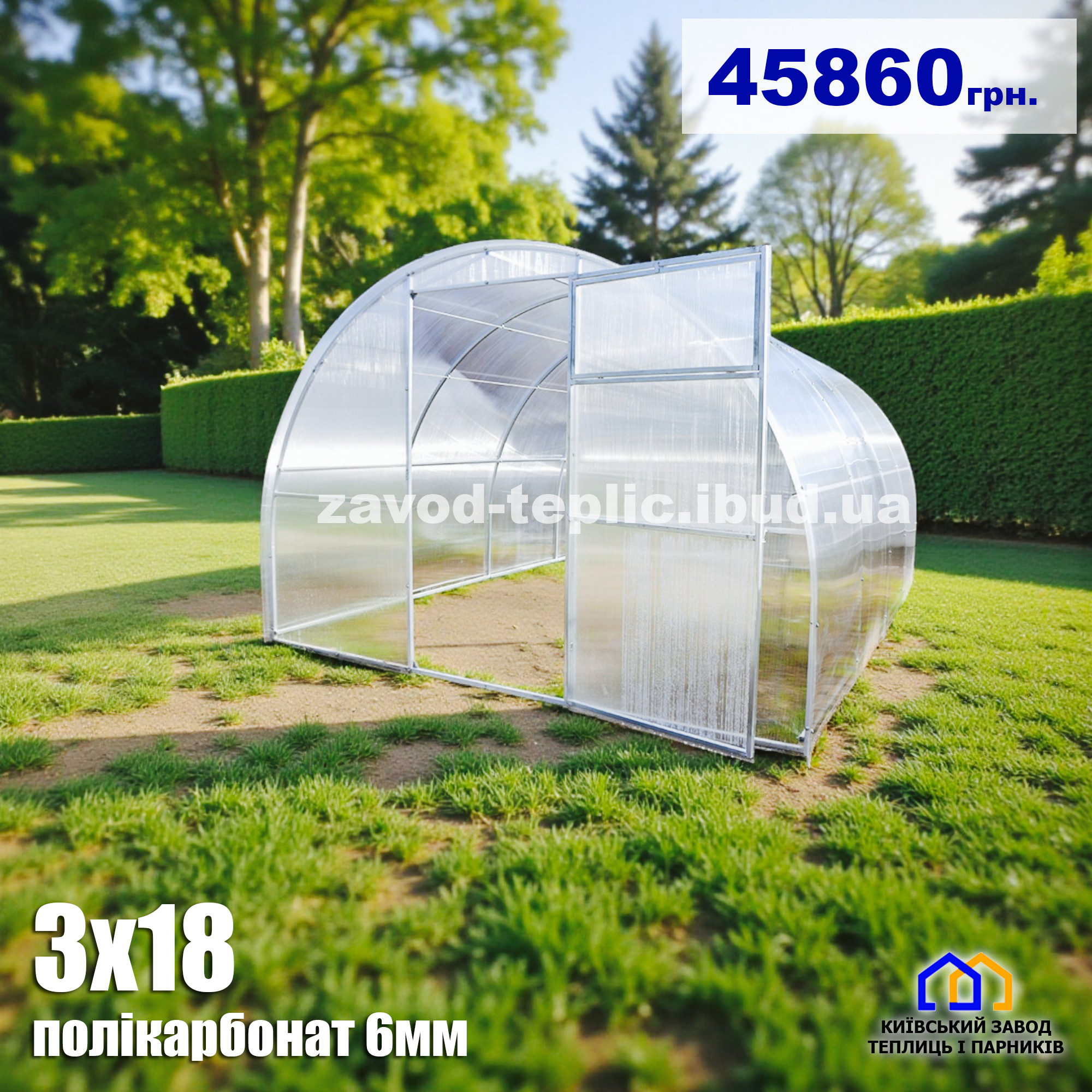 Теплиця з полікарбонатом 6 мм Слов`яночка 3х18
