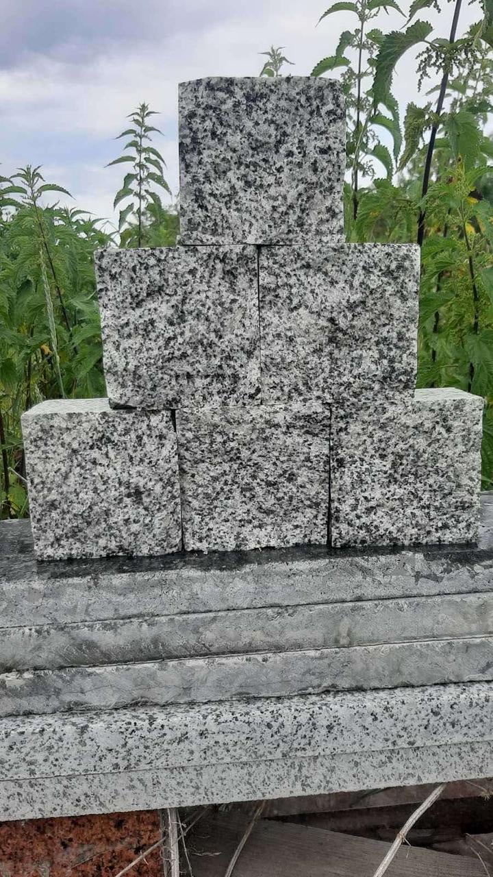 Опис Гранітна брусчатка пилено-колота (пиляні 4 боки, верх колотий) покостівка сіра
