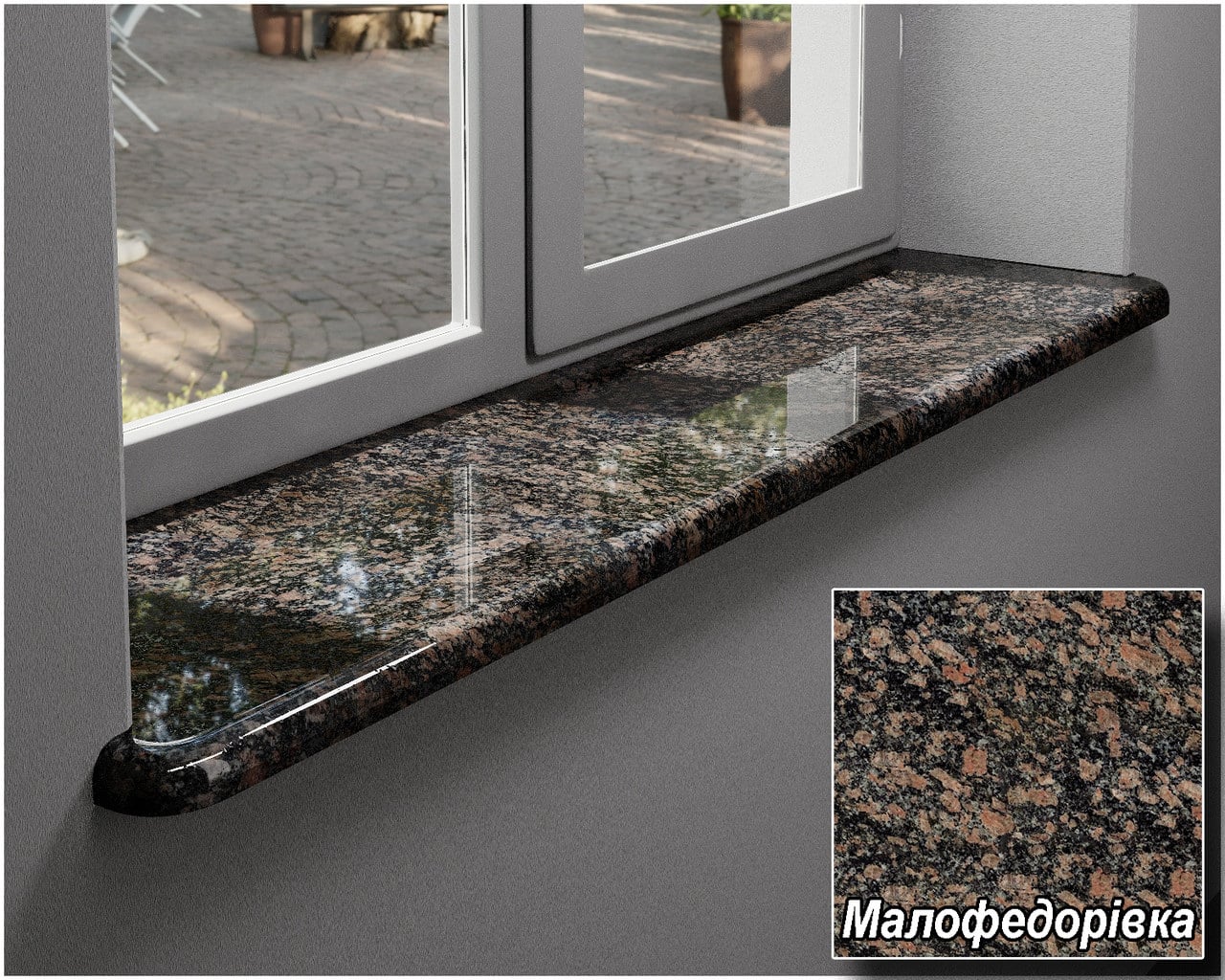Опис Гранітні підвіконня Малофедорівські сіро-червоні