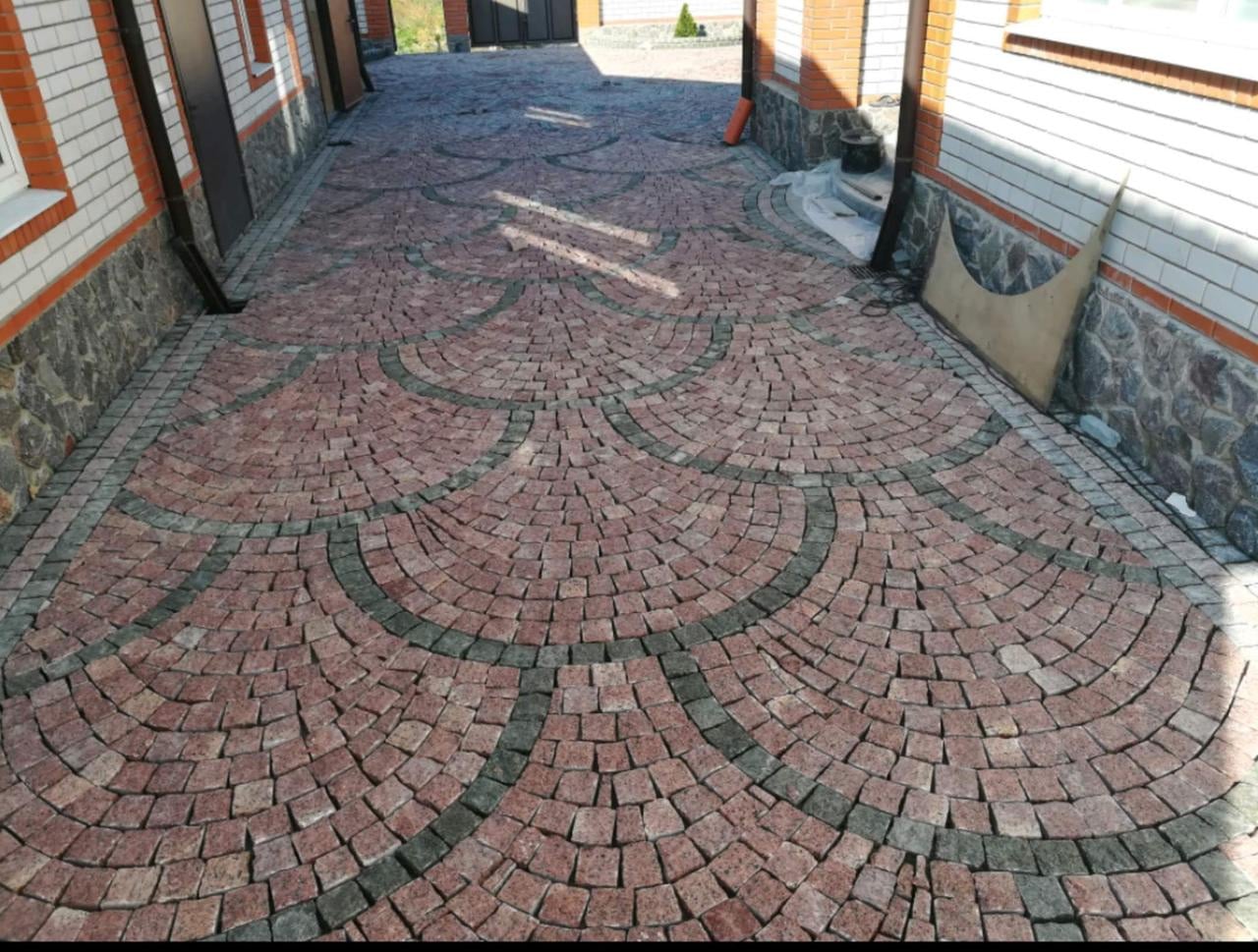 Розміри: 10*10*5 см, 10*10*10 см Гранітна бруківка — це один із найбільш міцних і довговічних матеріалів для мощення. Вона виготовляється з натурального каменю. Здебільшого має форму паралелепіпеда або куба. Колота покращена брусковина Або як її ще називають — "поліпшена", має дві бокові рівні грані. Вона трохи дорожча, ніж колота брусчатка, проте завдяки рівним сторонам укладається з меншим швом і дотриманням лінії. Водночас такий різновид брусчатки набагато дешевший за пиляльну. Тому її часто застосовують для укладання на великих територіях. Для створення колотих поверхонь використовується звичайний прес, а для гладких — алмазна пила. Компанія "Граніт Поліс" є виробником виробів із граніту та використовує своє власне обладнання. Отже, ми можемо гарантувати високу якість усієї товарної лінійки та помірну ціну. Покостівський граніт Брусчатка — це матеріал, який використовується для мощення доріг. Тому для її виготовлення застосовуються тільки найміцніші породи граніту. Однією з них є Покостування. Вона має цілу низку переваг — високу міцність, зносостійкість, стійкість до температур і вітру. Брусчатка з Покостового граніту, крім іншого, не вимагає особливого догляду, що робить її дуже практичною.