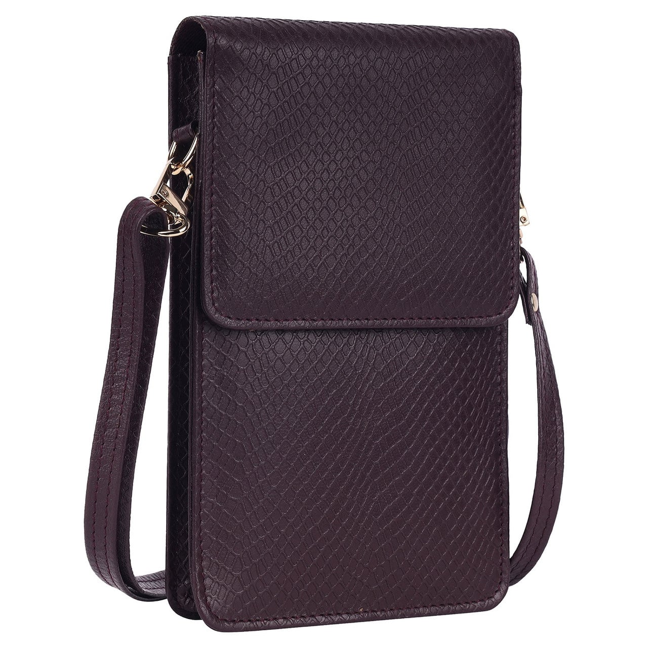 Невелика жіноча шкіряна сумка на плече для телефона, документів UP2 Fashion баклажан (темно-фіолетова).
