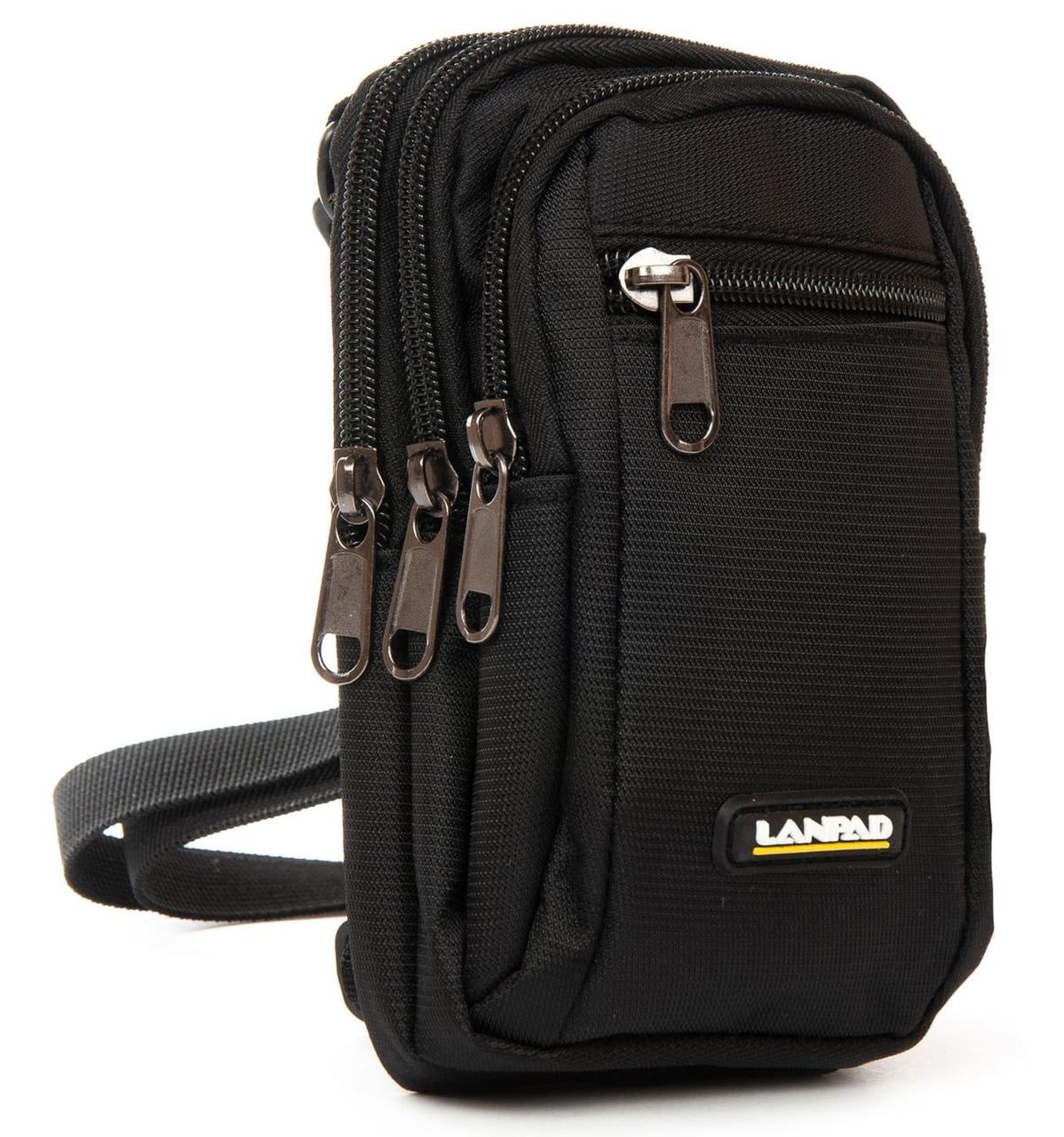 Компактна чоловіча сумка Lanpad, виготовлена з міцного нейлону. Три відділення закриваються на блискавку. На фасаді розташована кишеня на блискавці. На зворотному боці передбачене кріплення для поясного ременя. У комплект входить регульований плечовий ремінь, що робить сумку зручною для щоденного використання.