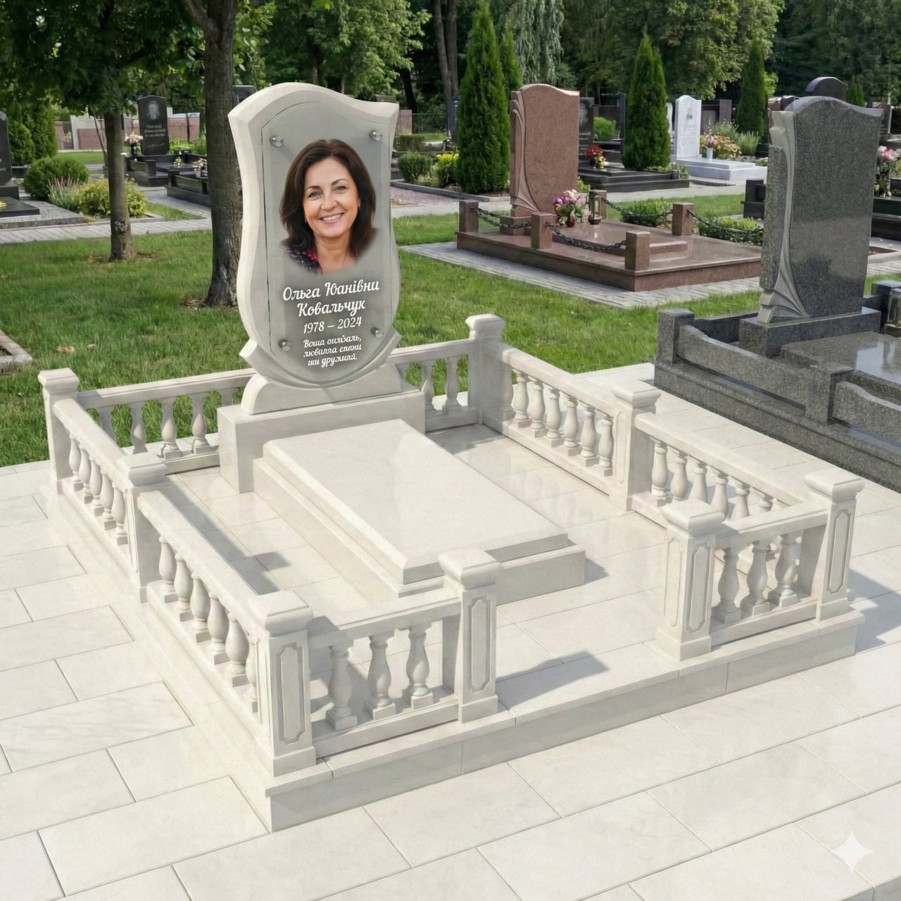 Опис Меморіальний комплекс мармуровий піщаник для жінки з балясинами