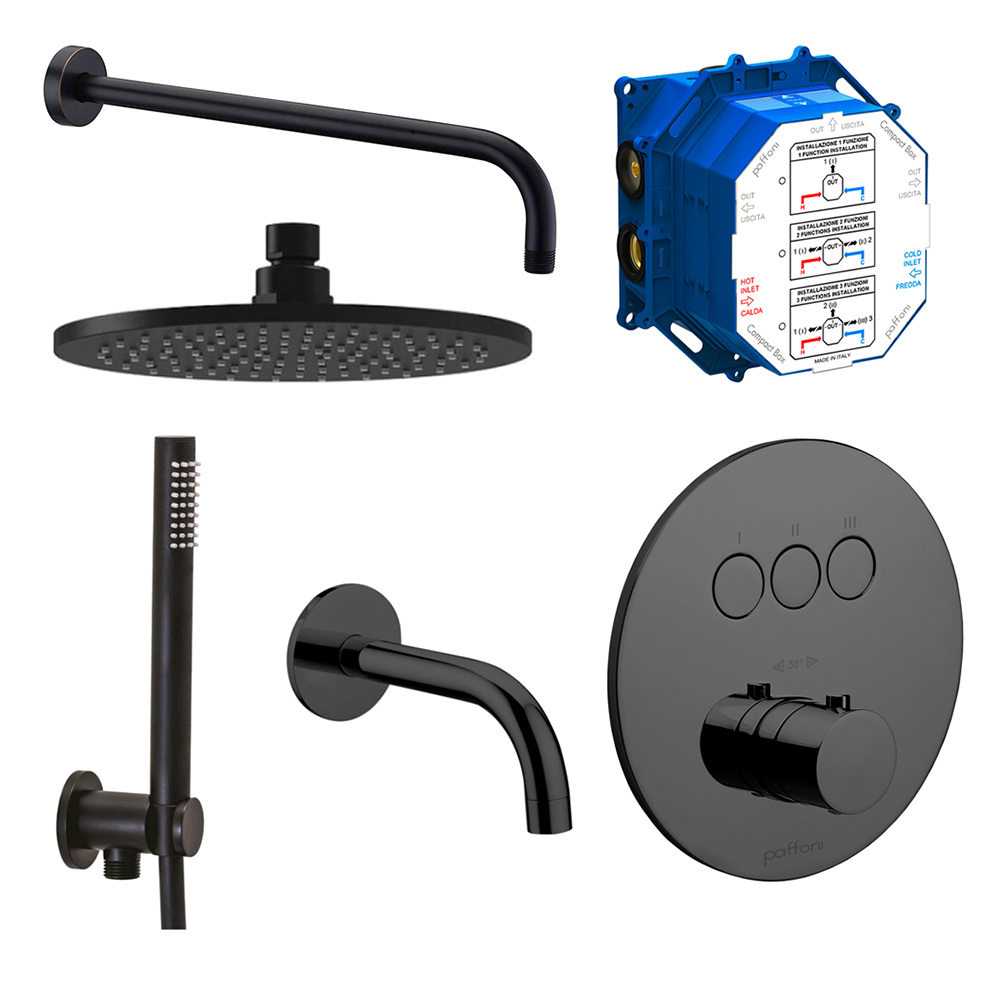 Набір для душової системи прихованого монтажу Paffoni 225 мм, чорний