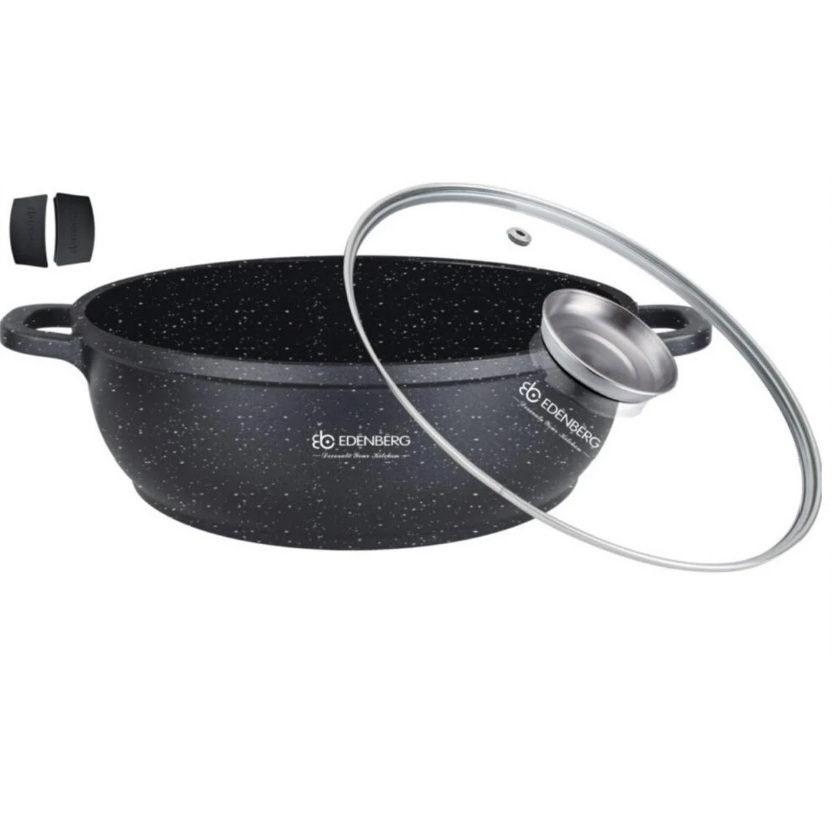 Сотейник Edenberg EB-8134 це чудовий прилад, в якому можна готувати їжу для великої кількості людей. Їм зручно користуватися завдяки ергономічним ручкам, що не нагріваються. Антипригарне покриття відповідає за ефективність їжі швидко готується, не прилипає до дна та стінок, тому каструлю можна легко очистити після експлуатації. Посуд має високу стійкість до деформацій та зовнішніх пошкоджень. Дно забезпечить рівномірний розподіл тепла всередині, що дозволить якісно приготувати їжу. Сотейник підходить для всіх видів плит. Для приготування деяких страв казан просто незамінний, наприклад для приготування плову або гасіння овочів з м'ясом. стінки, включаючи потовщене багатошарове дно. При застосуванні такого казана виключено пригоряння їжі, оскільки казан має внутрішнє керамічне покриття. Кришка виготовлена з термостійкого товстого скла, що має отвір для випуску пари і бакелітову ручку. Унікальна конструкція дна каструлі забезпечує відмінну теплопровідність та забезпечує рівномірну температуру на всій поверхні Характеристики сотейника Edenberg EB-8134 Каструля: 28 см об'єм: 3.3 л. литий алюміній обидві сторони мармурове антипригарне покриття підходить для всіх видів плит можна мити в посудомийній машині.
