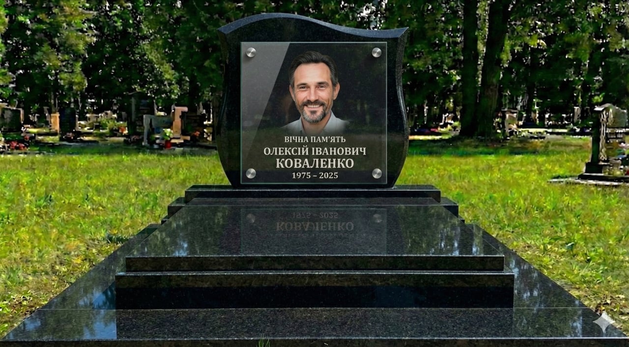 Опис Елітний гранітний пам'ятник із горизонтальною стелою габбро