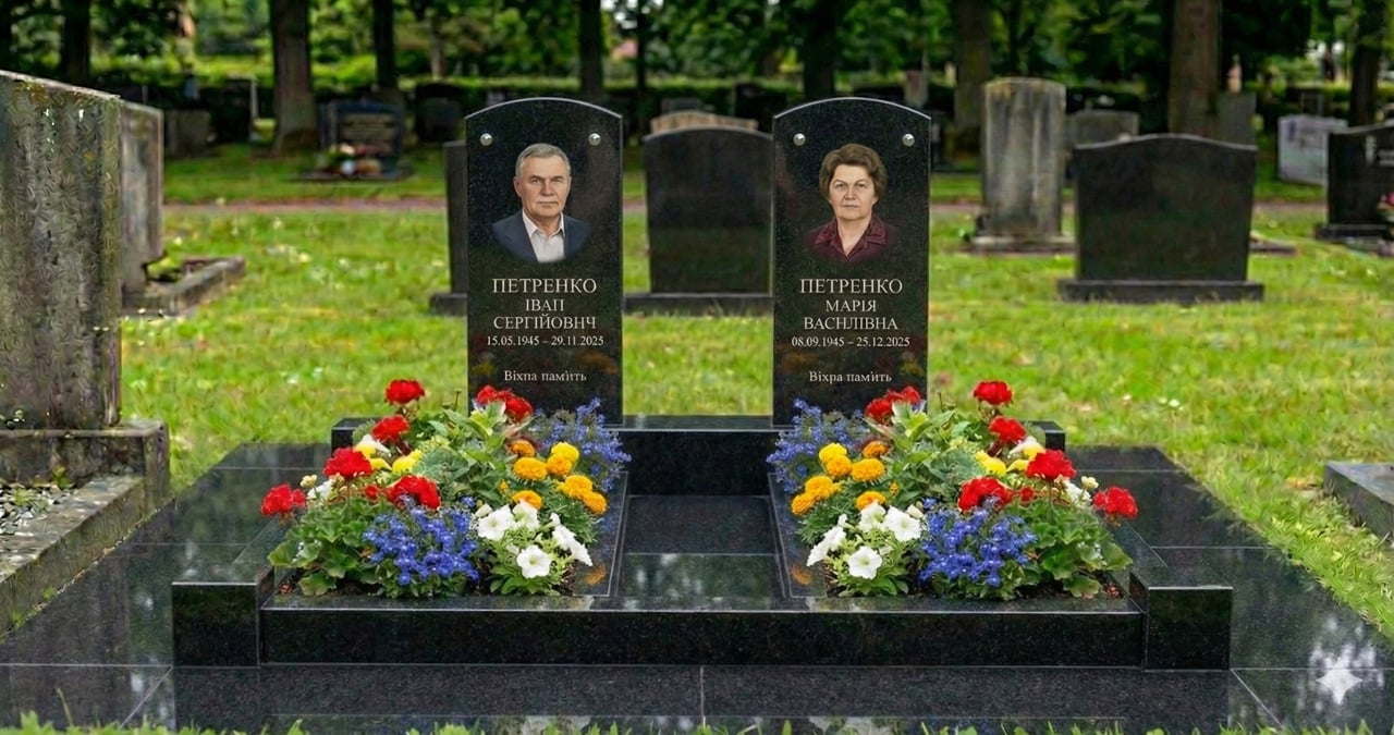 Памятник из черного гранита с цветниками и оградкой. Комплектуется площадкой. Ее размер 260*200 см. Памятник можно сделать из другого гранита. Размер площадки можем изменить, с учётом размера вашего участка.