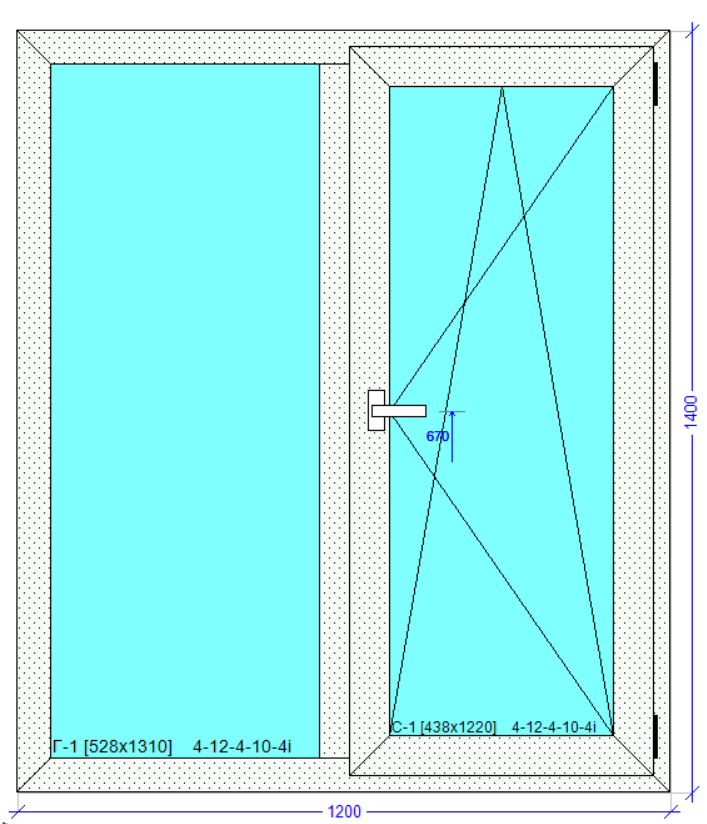 Розмір: 1200*1400 мм з однією стулкою поворотно-відкидною (за вашим вибором ліворуч або праворуч