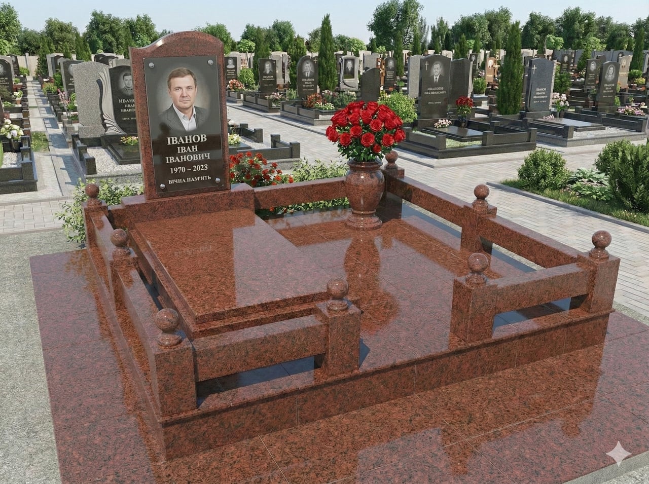 Опис Меморіальний комплекс із відмосткою червоний граніт
