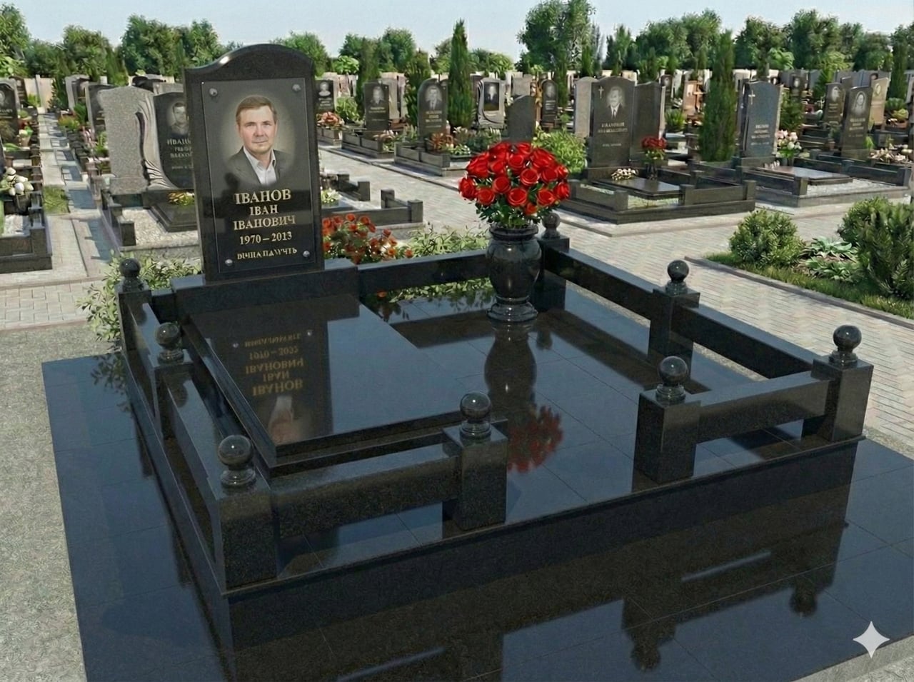 Опис Меморіальний комплекс із відмосткою чорний граніт