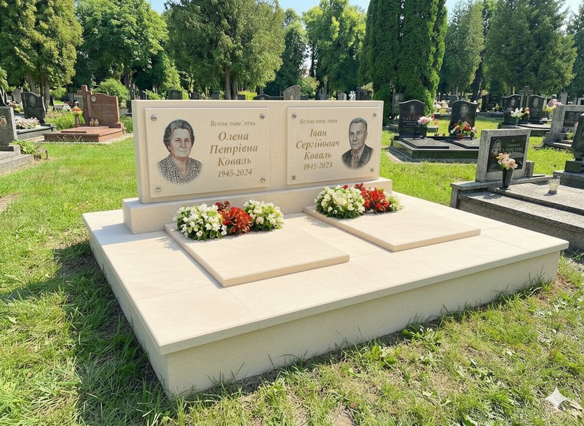 Опис Елітний подвійний пам'ятник із великим майданчиком білий камінь