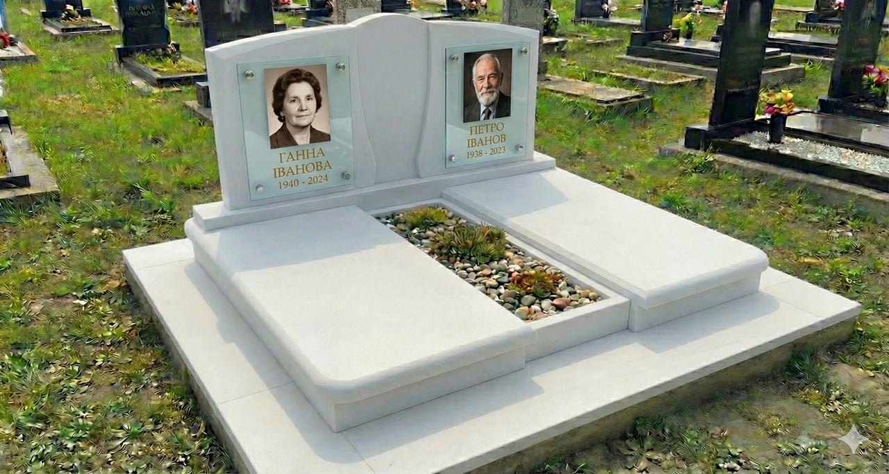 Подвійний пам'ятник із горизонтальною стелою та майданчиком мармуровий пісковик
