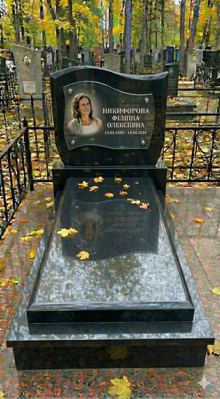 Опис Памятник с фигурной горизонтальной стелой габбро