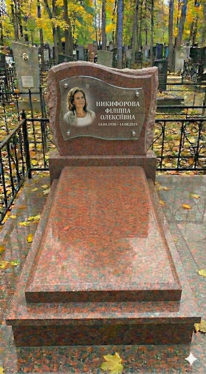 Опис Пам'ятник із фігурною горизонтальною стелею червоний граніт