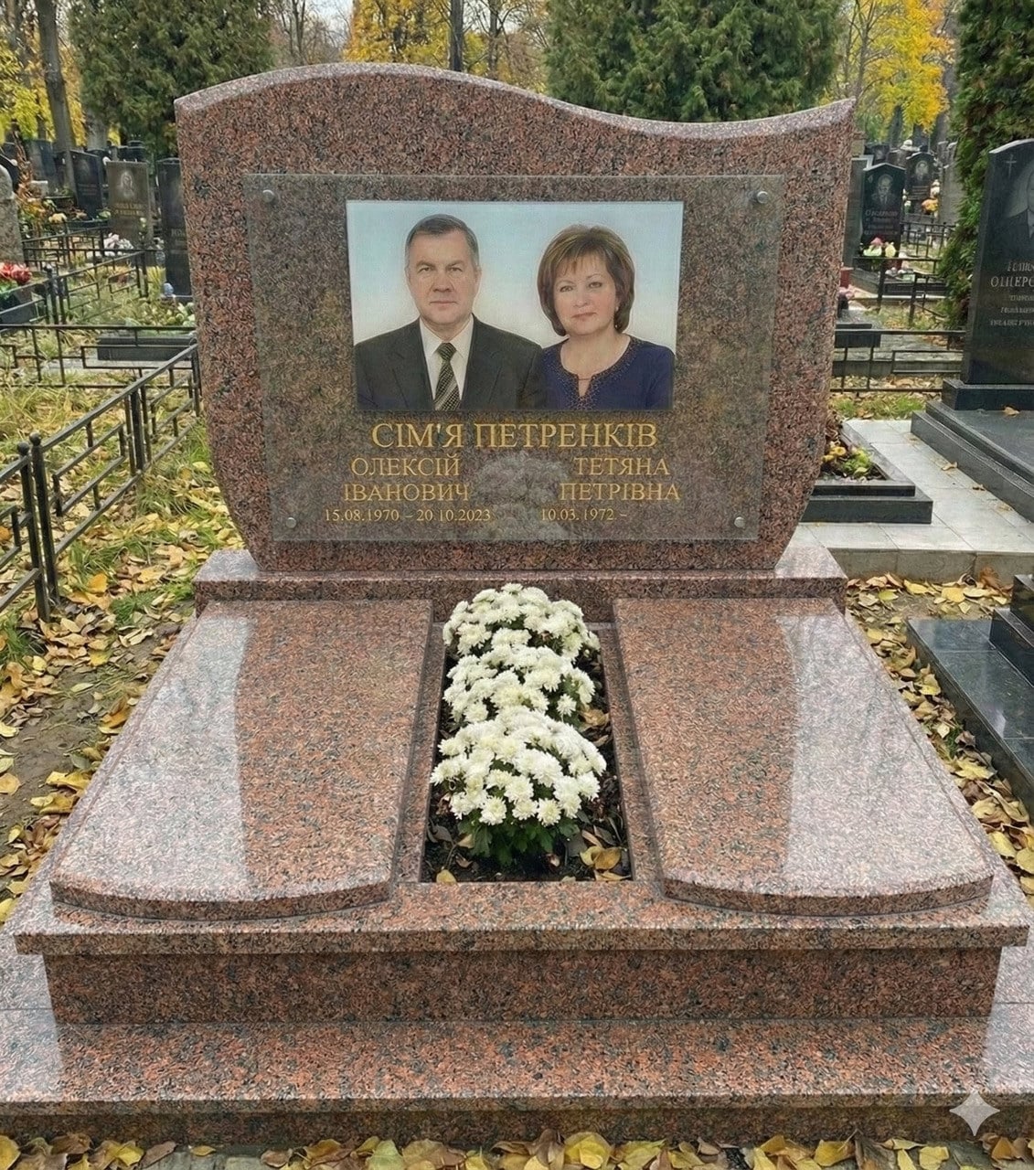 Опис Подвійний пам'ятник із горизонтальною стелою та відмосткою червоний граніт