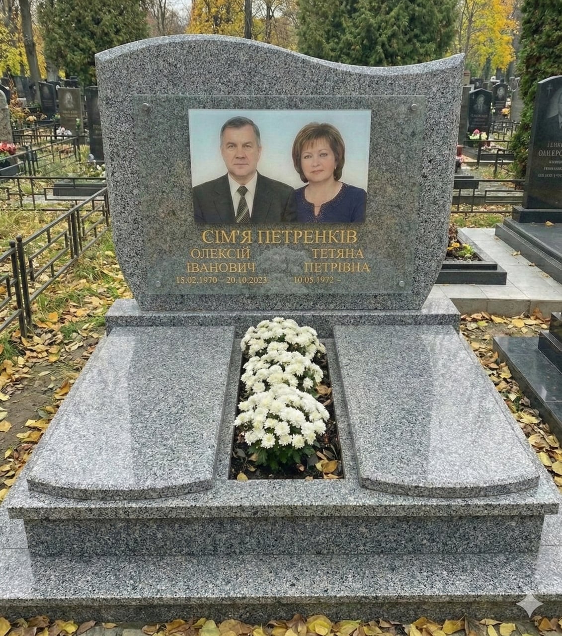 Опис Подвійний пам'ятник із горизонтальною стелою та відмосткою сірий граніт