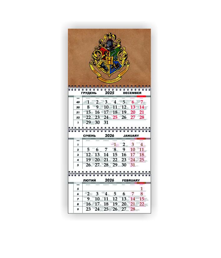 Календар квартальний настінний Vivay 2026 Гаррі Поттер 30x65 см Різнокольоровий (hub_wfgz98)
