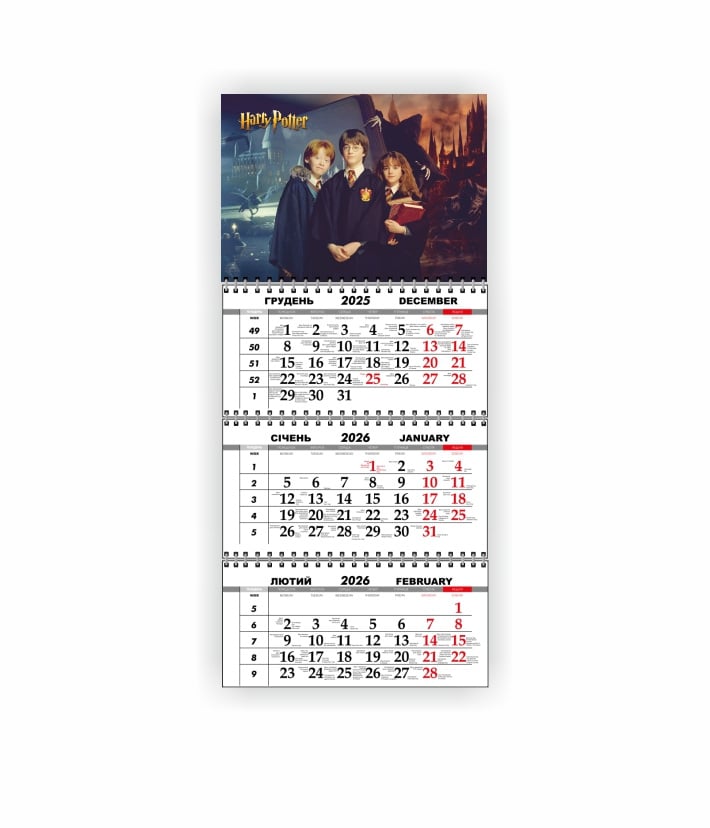Календар квартальний настінний Vivay 2026 Гаррі Поттер 30x65 см Різнокольоровий (hub_e2pnb8)