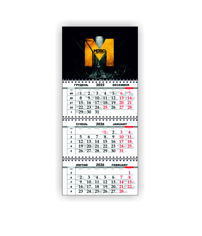Календар квартальний настінний Vivay 2026 METRO 30x65 см Різнокольоровий (hub_8osg84)