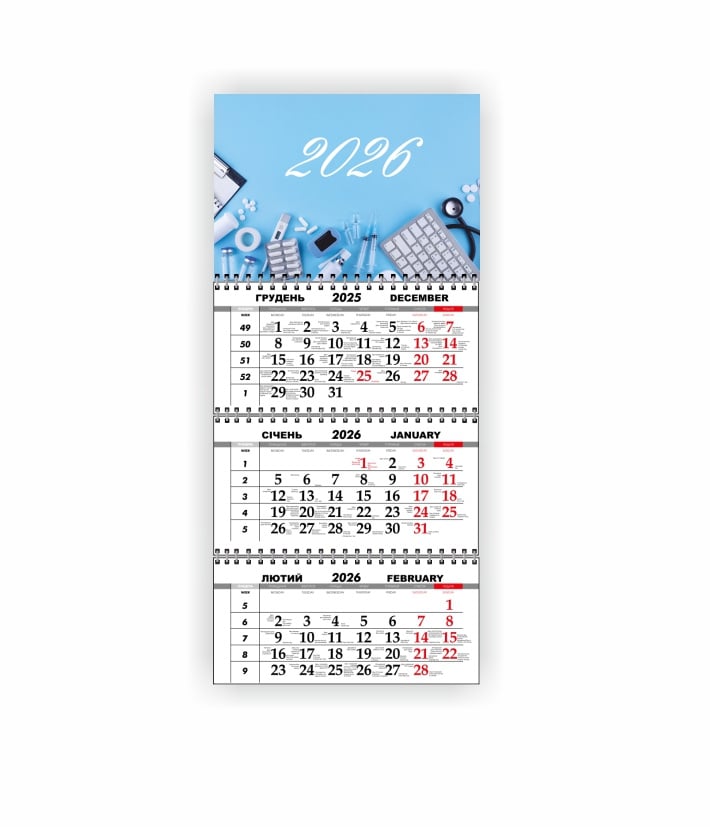Календар квартальний настінний Vivay 2026 Медичний 30x65 см Різнокольоровий (hub_t0rfkl)