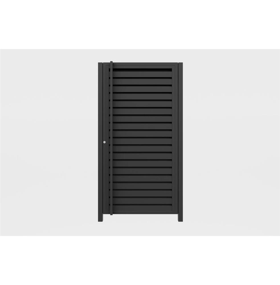 Завдяки горизонтальним ламелям у стилі жалюзі хвіртка виглядає стильно та гармонійно поєднується з будь-яким парканом і архітектурним стилем будинку.