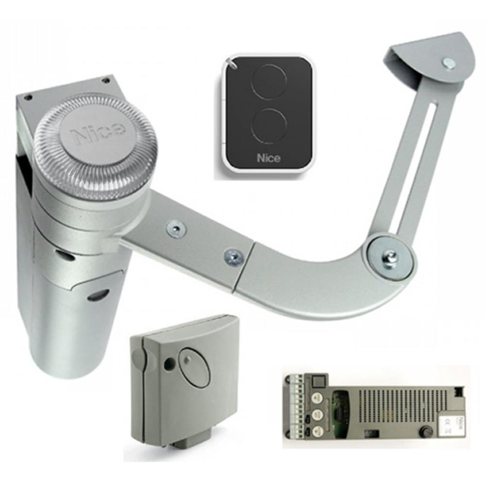 Привод WL1024C, що входить до складу комплекту, відноситься до важеля. Він може встановлюватися на нестандартні опори, навіть на стовпи шириною всього 8 см, в складних отворах. Лінійну техніку в цих випадках, на жаль, встановити не вдасться. Електропривод самоблокується, він замикає стулку після закриття, забезпечуючи безпеку. Стулка відкривається досить швидко - за 7 секунд. Інтенсивність експлуатації цього механізму дозволяє здійснювати до 50 робочих циклів в годину. Таким чином, можна навантажувати обладнання, не боячись, що воно відмовить або поламається. У комплект NICE Walky +1024 KCE входять: