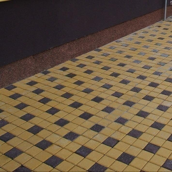 Характеристики товару Тротуарна плитка Золотий Мандарин Квадрат малий 100х100х60 мм на сірому цементі коричневий