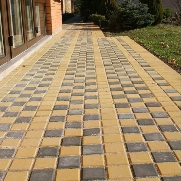 Опис Тротуарна плитка Золотий Мандарин Квадрат малий 100х100х60 мм на білому цементі жовтий