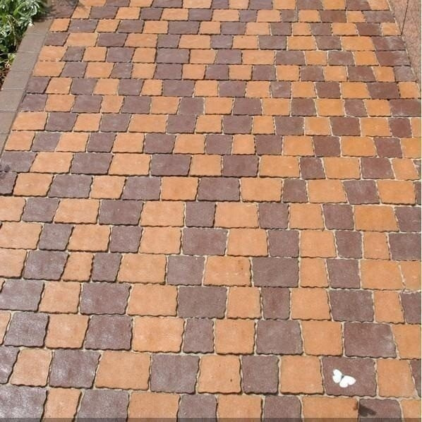 Товщина: 60 мм. Тротуарна плитка Золотий Мандарин Креатив 60 мм персиковий на білому цементі відрізняється стійкістю до перепадів температур.