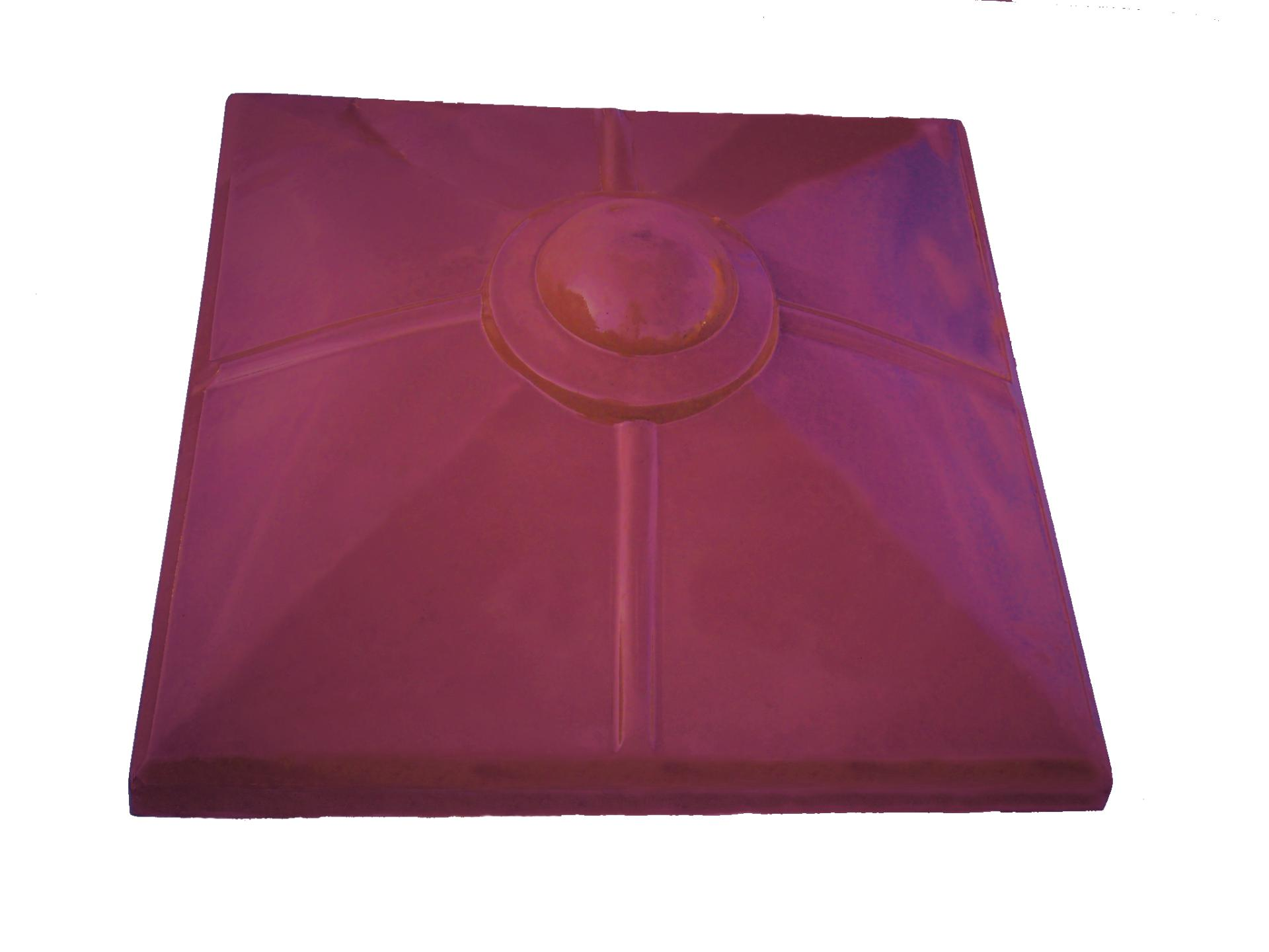 Розміри: 450х450 мм; Колір: червоний; Матеріал вироби: бетон. Атмосферні опади можуть чинити негативний вплив на опори з бетону та цегли для парканів. Тому для продовження експлуатаційного періоду останніх, необхідно заздалегідь потурбуватися про їх додаткового захисту. У таких випадках раціонально використовувати, наприклад, бетонні дашки на цегляні стовпи, які не тільки захищають їх, але і надають конструкціям оригінальний і естетичний зовнішній вигляд. Найбільш популярним варіантом є ковпаки на парканні стовпи, форма яких відповідає чотирисхилим піраміді. Однак набирають популярність вироби, що мають незвичайні обриси, які виконуються під замовлення, ціна яких трохи вище середньої. Найбільш часто використовуваними є кришки з бетонним кольором, тобто сірим. Однак при використанні вібролиття в склад додаються різні пігменти, які і дадуть будь-який колір забарвлення виробу. Виробництво якісних виробів здійснюється на сучасному обладнанні. А в якості основного матеріалу використовуються волого - і морозостійкі марки бетону.
