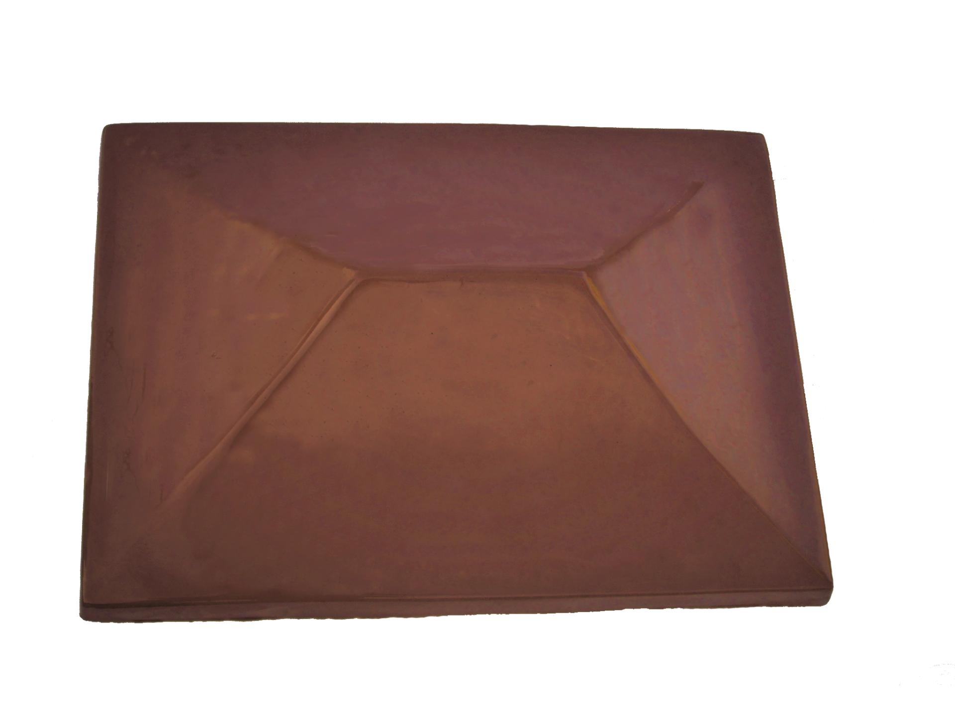 Розміри: 310х310 мм; Колір: червоний; Матеріал вироби: бетон. Стовп, що має спеціальну насадку, буде надійно захищений від атмосферних опадів. На верхній частині не буде осідати різного роду бруд. За рахунок цього термін експлуатації стійок значно збільшиться. Самі насадки можуть мати різні кути нахилу, а поверхня зазвичай покривається спеціальними водовідштовхувальними речовинами. Кришки на паркан виконують дві важливі функції. Першої — є декоративна, естетична функція. Оскільки вони надають огорож, парканів, колон, завершений вигляд, який підкреслює стиль та смак огорож. Другий – є захисна функція. Бетонний ковпак для забору складається з верху, що виконує функцію декоративного парасольки, і нижньої частини, за допомогою якої відбувається кріплення. Більш сучасні моделі таких колпаков дозволяють кріпити на їх верхівці навіть лампочки для ліхтарів.