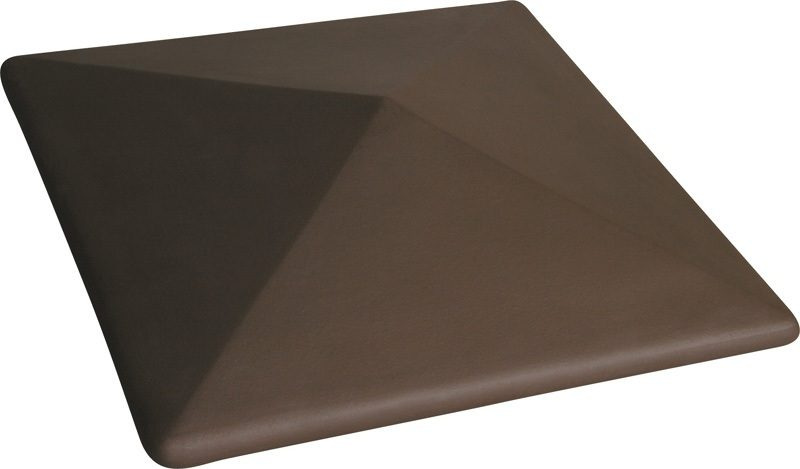 Розміри: 390х390 мм; Колір: коричневий; Матеріал вироби: бетон. Стовп, що має спеціальну насадку, буде надійно захищений від атмосферних опадів. На верхній частині не буде осідати різного роду бруд. За рахунок цього термін експлуатації стійок значно збільшиться. Самі насадки можуть мати різні кути нахилу, а поверхня зазвичай покривається спеціальними водовідштовхувальними речовинами. Кришки на паркан виконують дві важливі функції. Першої — є декоративна, естетична функція. Оскільки вони надають огорож, парканів, колон, завершений вигляд, який підкреслює стиль та смак огорож. Другий – є захисна функція. Бетонний ковпак для забору складається з верху, що виконує функцію декоративного парасольки, і нижньої частини, за допомогою якої відбувається кріплення. Більш сучасні моделі таких колпаков дозволяють кріпити на їх верхівці навіть лампочки для ліхтарів.