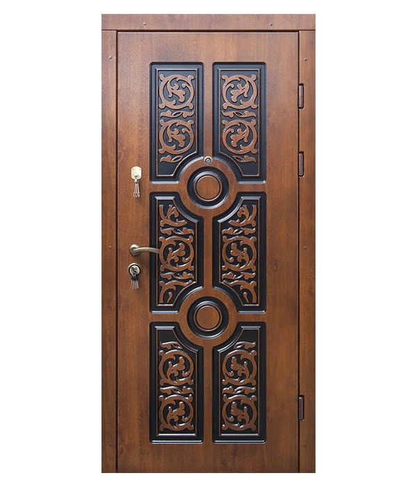 Базова комплектація колекції СтандартГнутый профіль 85 мм, торець коробки зашитий (утеплений мін. ватою) з четвертю, стулка 71мм, мдф 16/10, ручка розеткою, вічко, антизрізи, три петлі, три горизонтальні ребра жорсткості, утеплювач мінеральна вата, термо ущільнювач, ключ/тумблер, наличник 19мм, відповідна планка верхнього і нижнього замків, броненакладка нижнього замку втоплена (для вулиці - вологостійкий МДФ)
