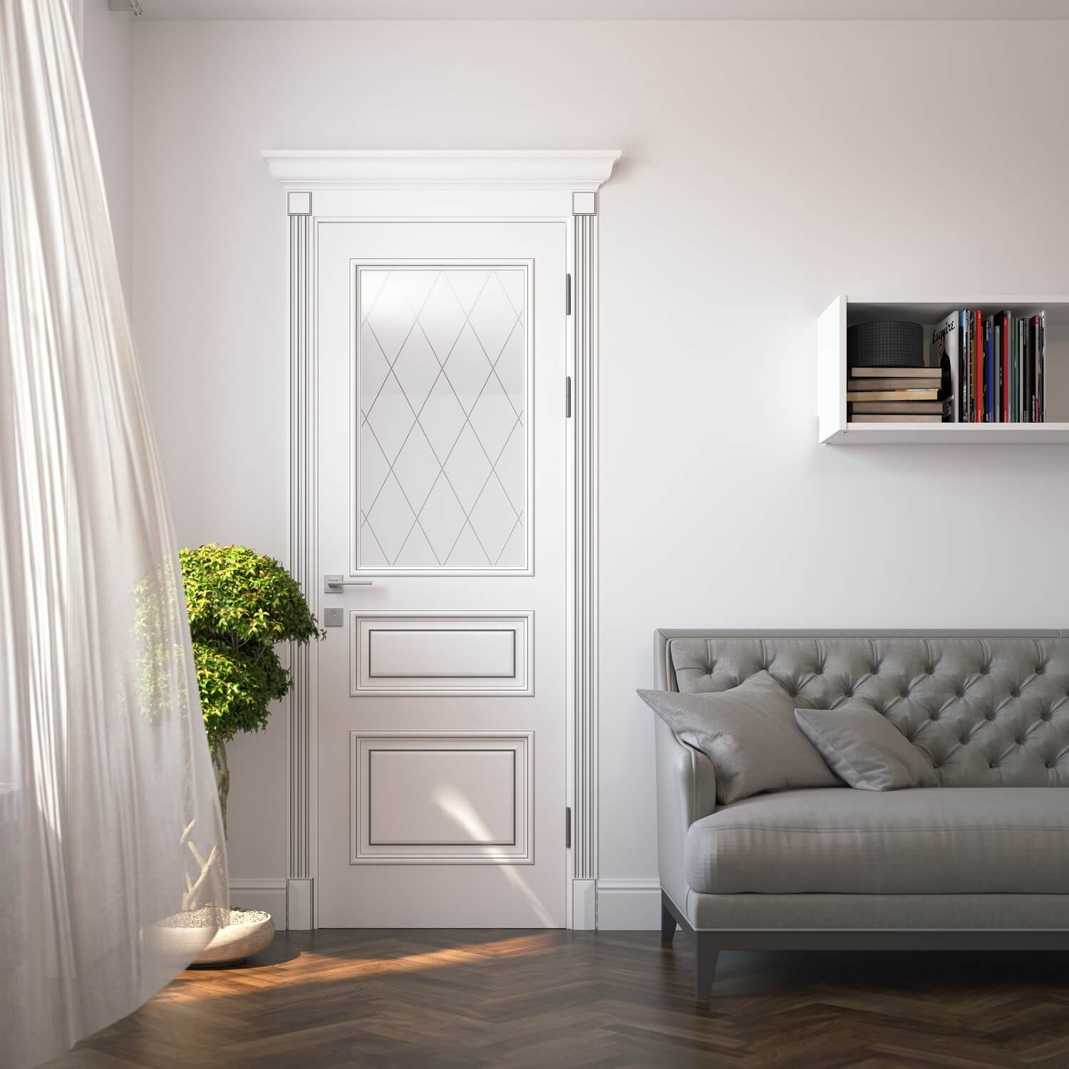 Характеристики дверного блоку:Дверне полотно 2000 х 600,700,800,900 мм;Дверний короб: матеріал сосна + МДФ, розмір 95 х 2150мм;Наличник: матеріал МДФ, розмір 75 х 2070мм;Товщина полотна: 44 мм;Конструкція