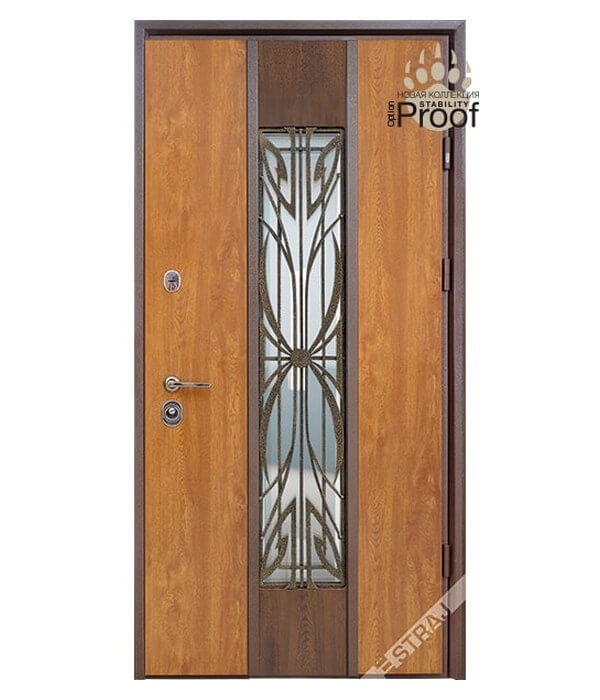 Компанія «Страж» - українське підприємство європейського рівня, яка вже 17 років займається виготовленням високоякісних дверей для приватних будинків і міських квартир. Компанія постійно оновлює модельний ряд, регулярно бере участь у спеціалізованих виставках, розвивається і підвищує якість своїх виробів. Компанія «Страж» використовує тільки самі сучасні технології, якісні матеріали, висококласну фурнітуру, замки від зарекомендували себе італійських і російських виробників, а також авторський декор – ковані елементи та вітражне скло.На сьогоднішній день ТМ «Страж» пропонує покупцям широкий модельний ряд вхідних дверей – від бюджетних виробів – до серій преміум-класу. Вхідні двері «Страж» - це оптимальне співвідношення ціни та якості, індивідуальний підхід до кожного клієнта і високий рівень сервісу.Компанія «Страж» представляє нову колекцію вхідних вуличних дверей Stability PROOF. Особливістю конструкції є спеціалізований сталевий лист з покриттям ПВХ "Винорит", який виготовлений на основі оцинкованого плоского прокату, товщиною 1,2 мм, при товщині покриття цинку 230 р./кв. м. Ламінований сталевий лист виготовляється компанією Страж методом кашированния на автоматизованої виробничої лінії європейського виробництва. Процес відбувається під впливом тиску, температури і термохімічний реакції. В результаті покриття володіє високими експлуатаційними властивостями.Вхідні двері Stability PROOF стійкі до перепадів температур, агресивних кліматичних впливів і ультрафіолетових променів. У конструкції дверного полотна передбачений термоміст, що перешкоджає появі конденсату, при різниці температур. Надійна вхідні двері Stability PROOF стане гарантом безпеки вашого будинку.