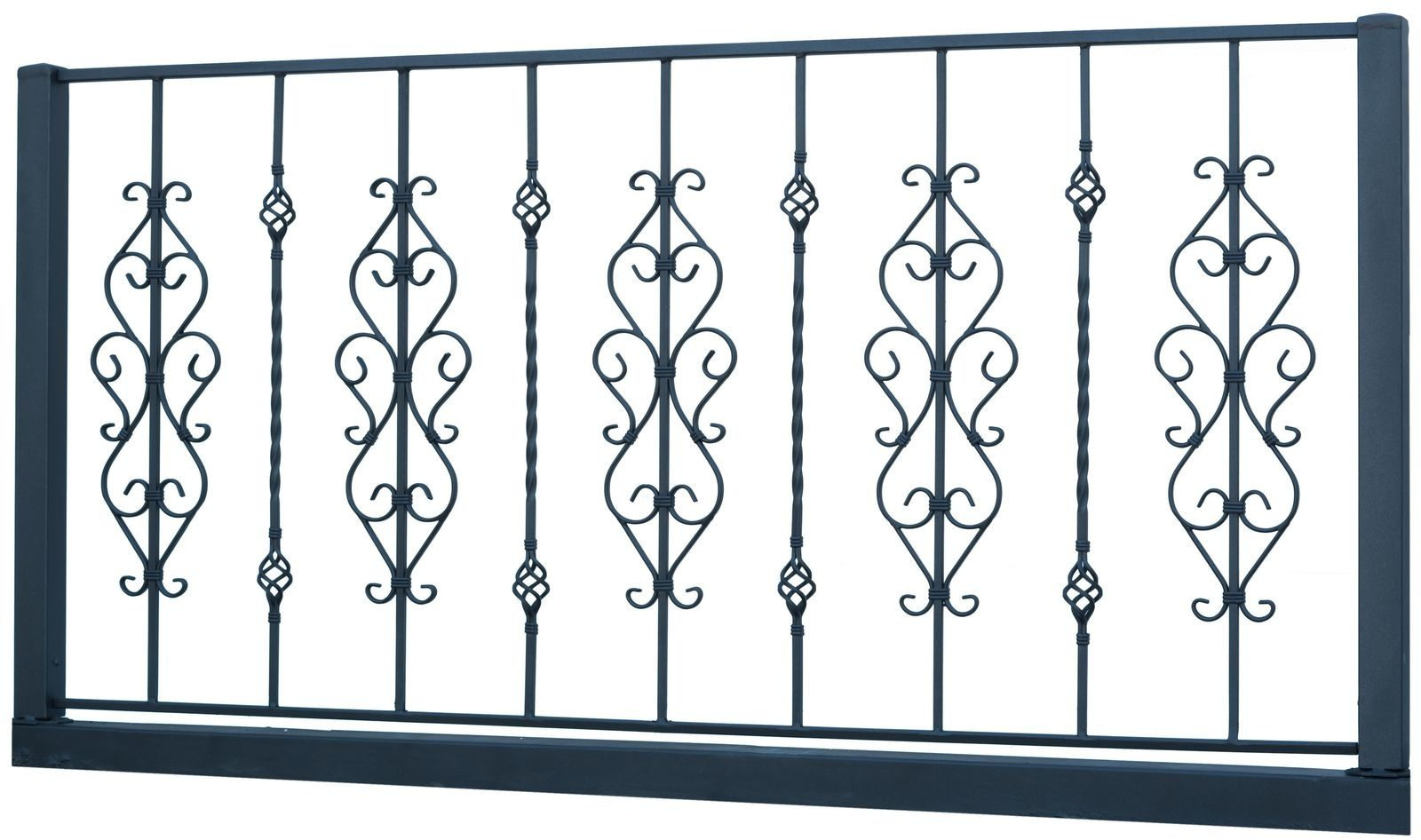 Висота: 980 мм, Ширина: під замовлення. Огородження можуть виготовлятися в двох варіантах: - під зварювання до стовпів. - під болти (отвори в стовпах свердляться вже при установці). Грунт світло-сірий або фарба (антикорозійна) чорна. *Стовпи у вартість не входять і замовляються окремо! Доставка по Україні Безкоштовно! *доставка здійснюється через компанію-перевізника "Делівері-Авто".